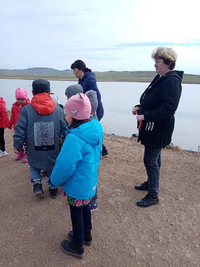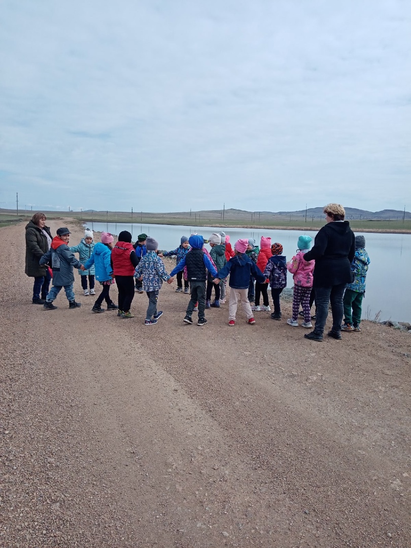 Экскурсия на пруд с детьми разновозрастной группы Цель: Рассказать о значении воды в нашей жизни, познакомить детей с различными обитателями водоёмов, воспитывать бережное отношение к окружающему миру.