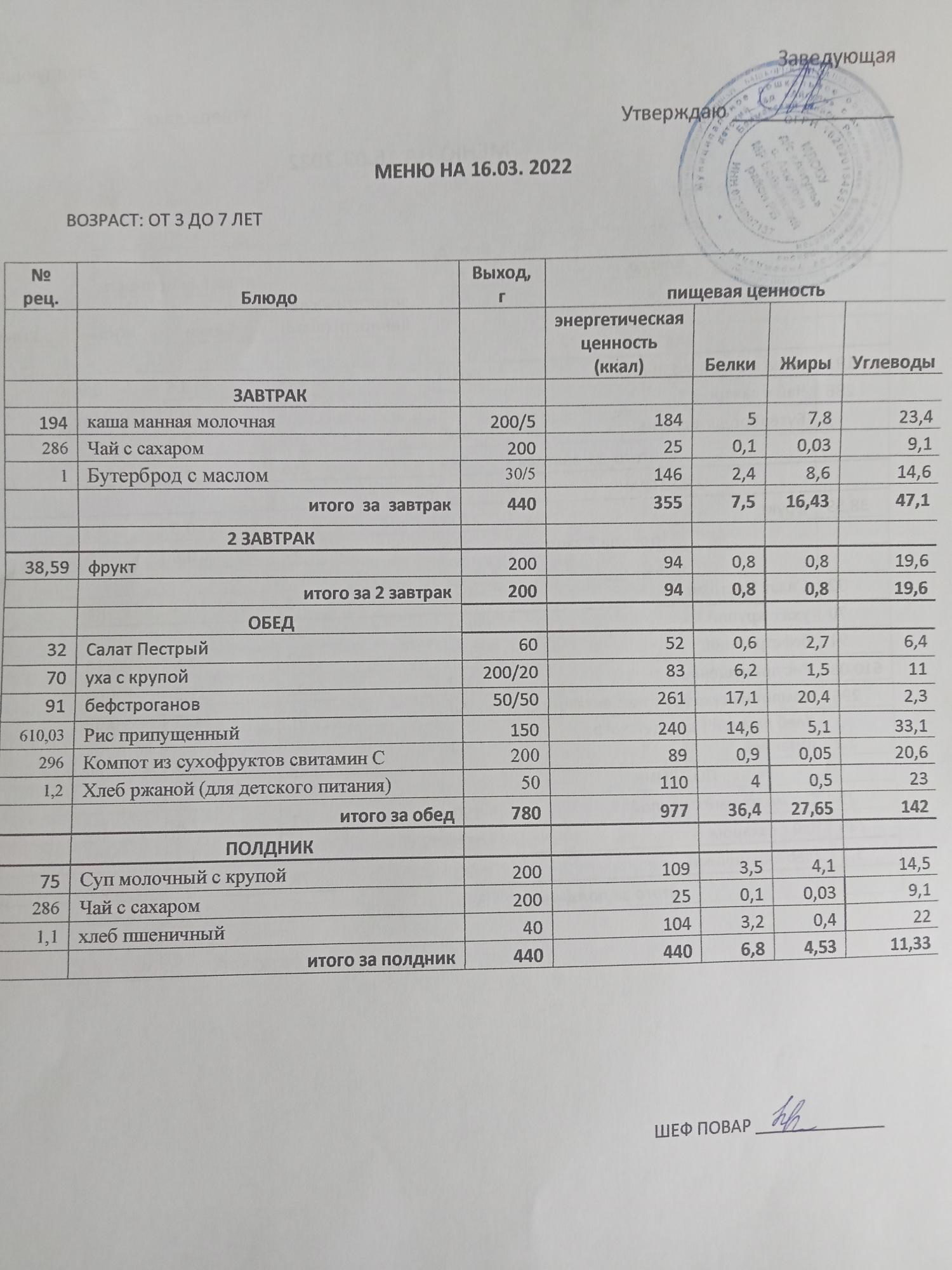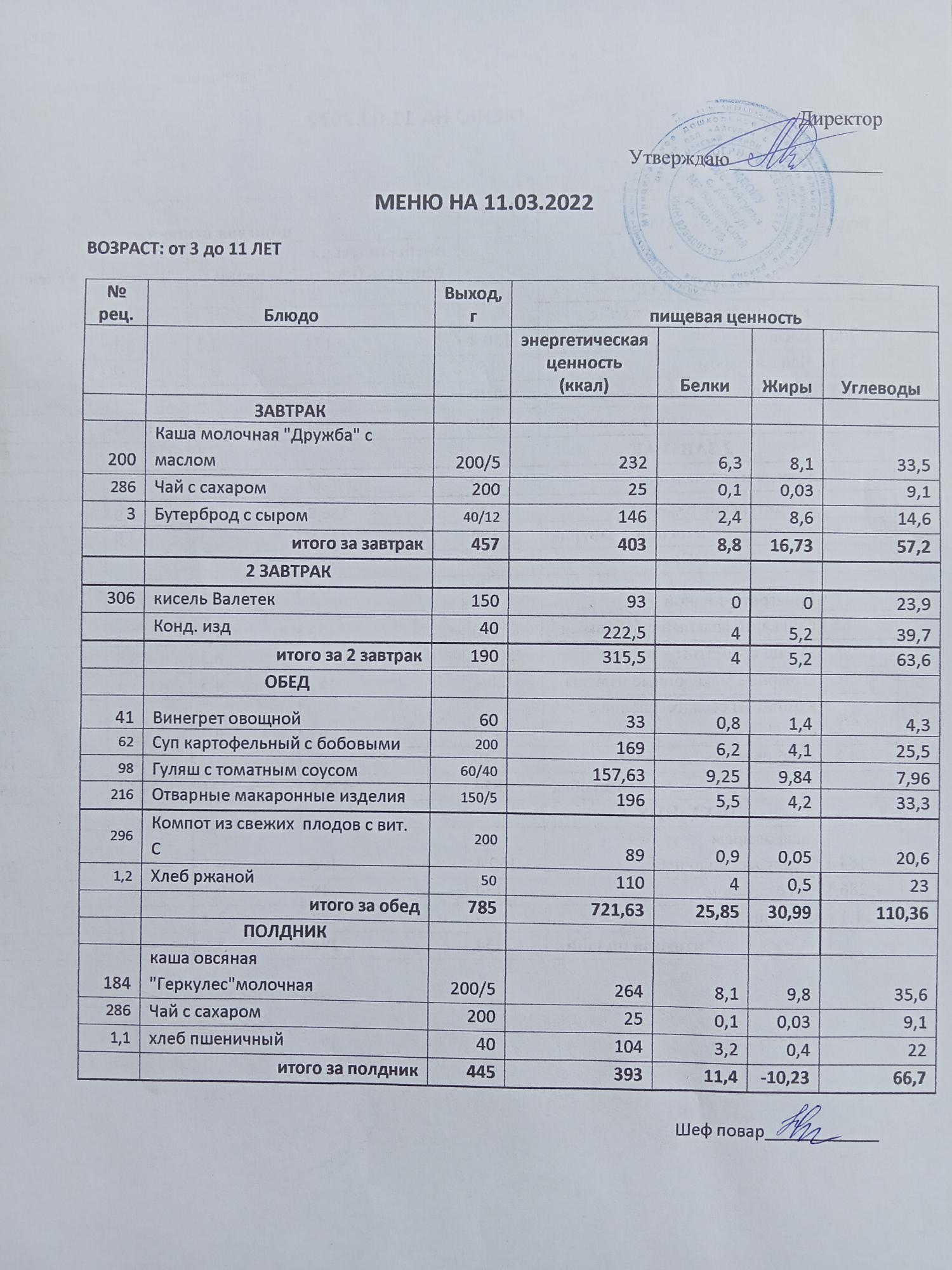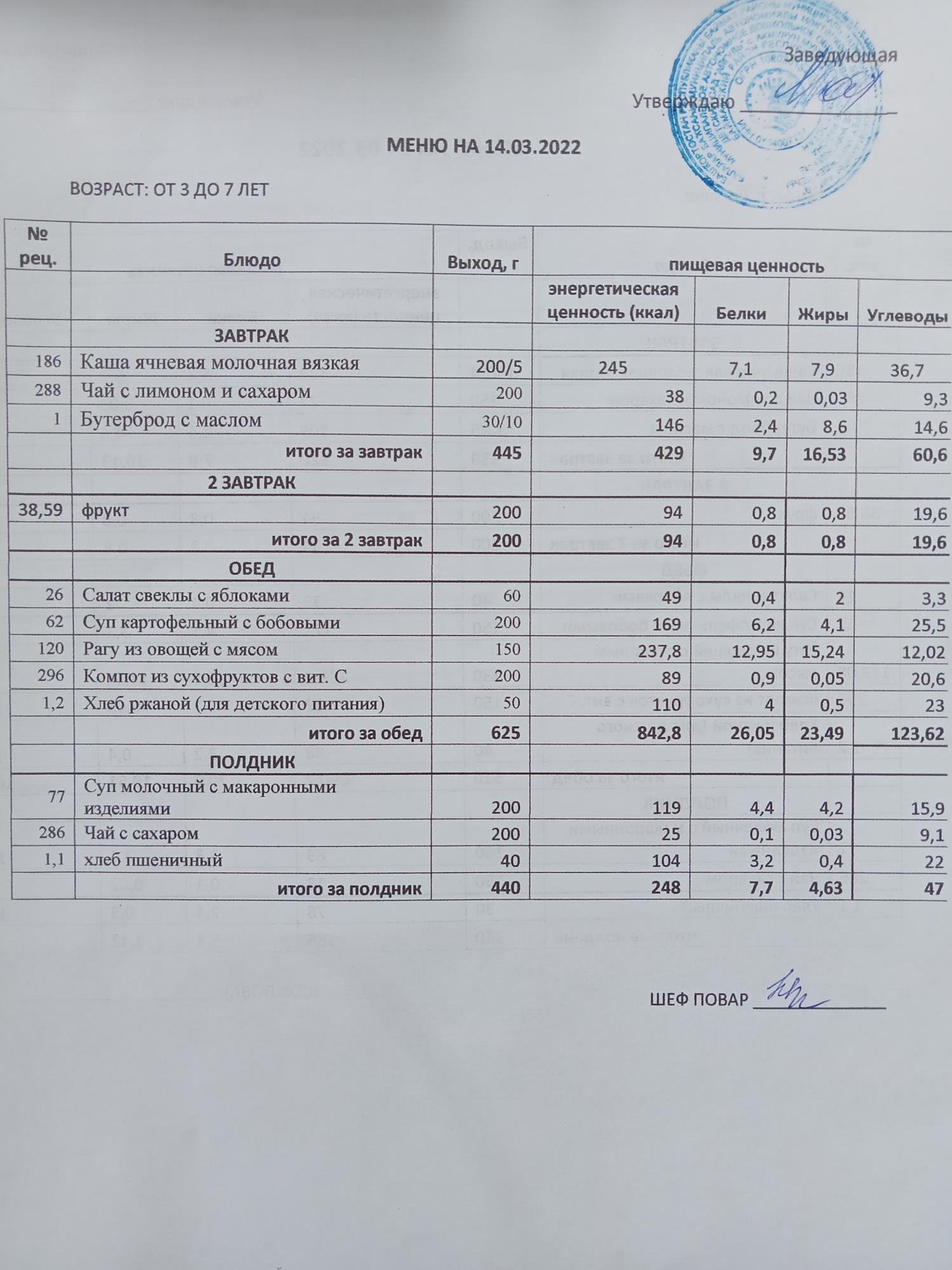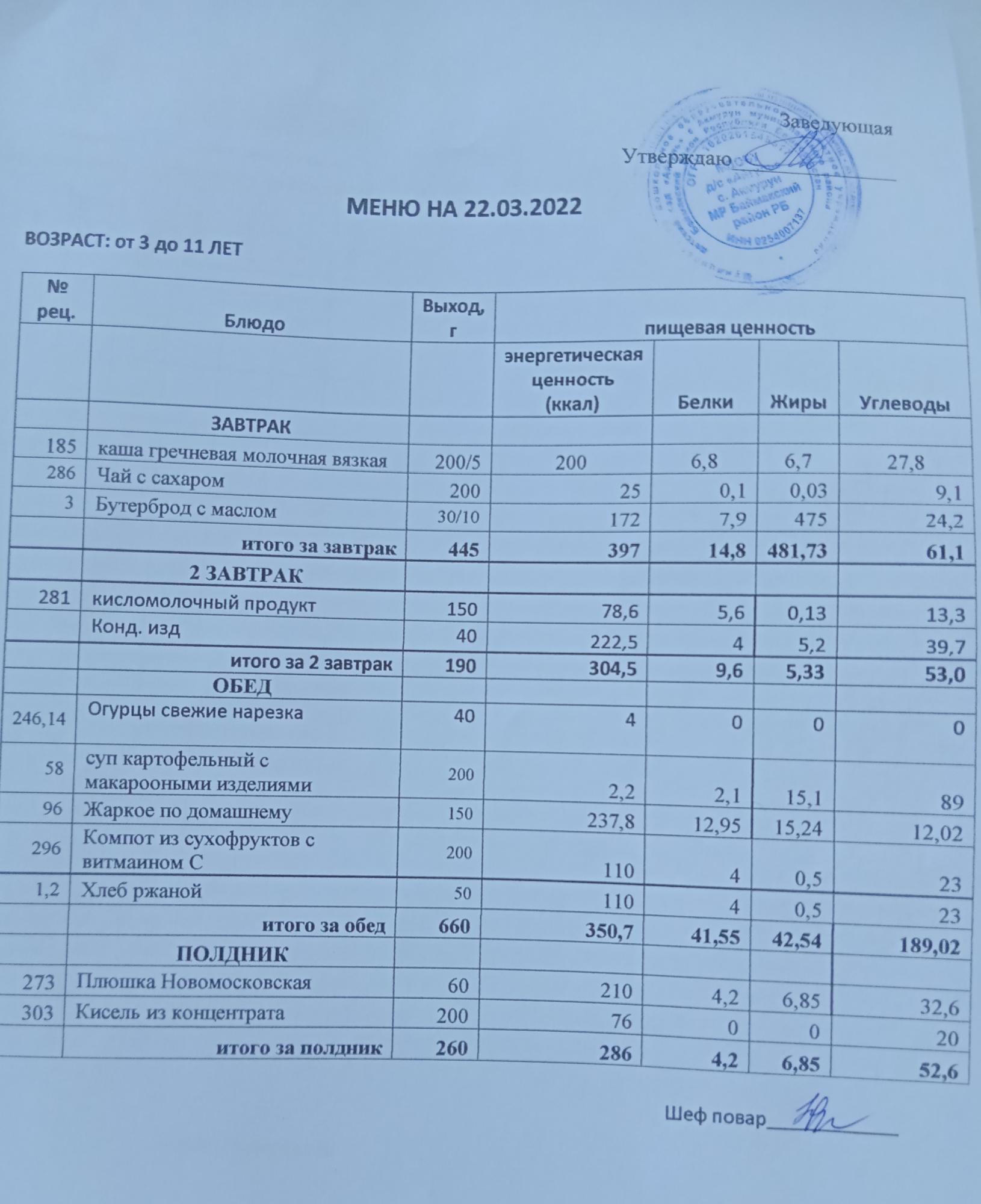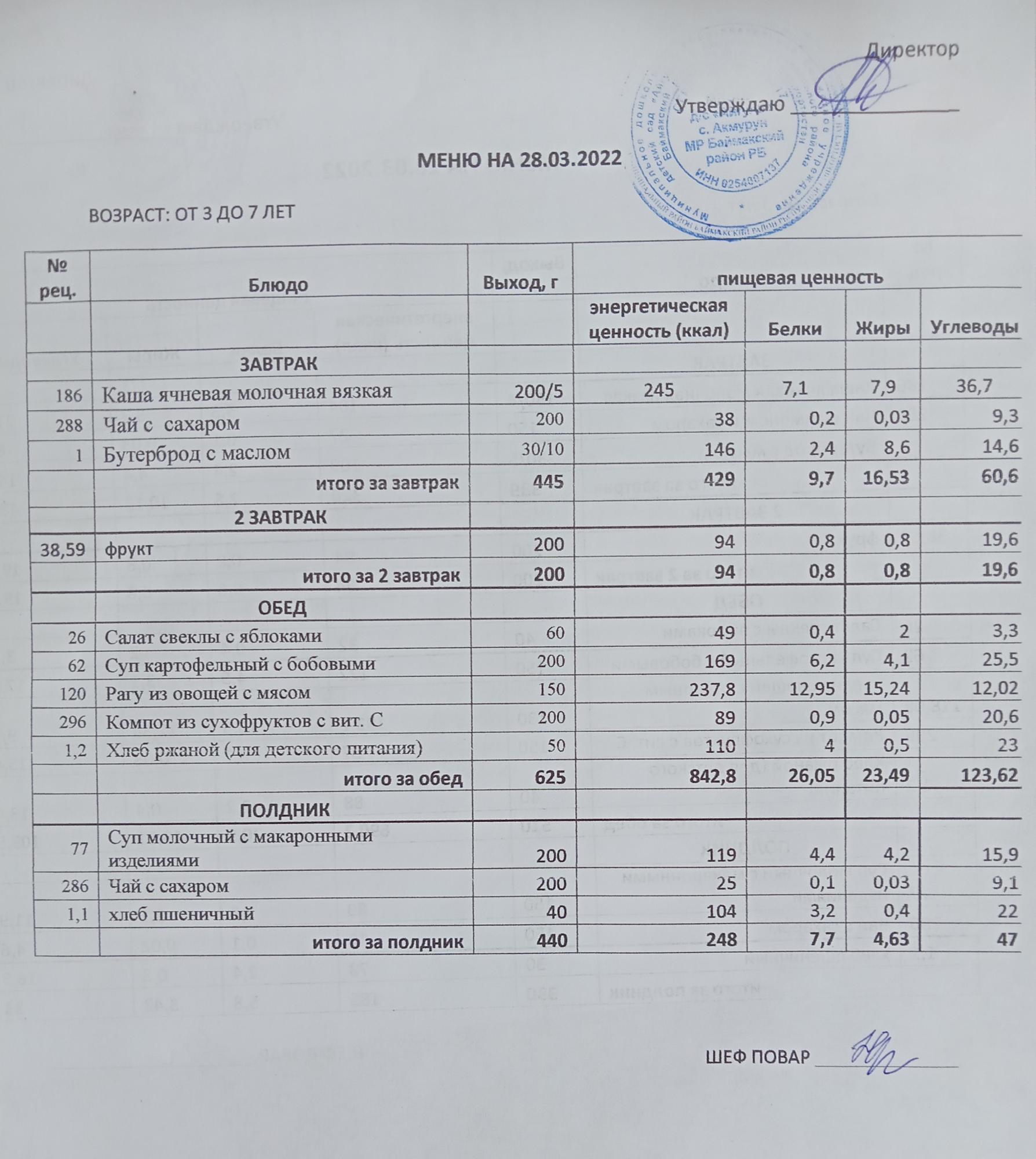 (Меню на 28 марта )