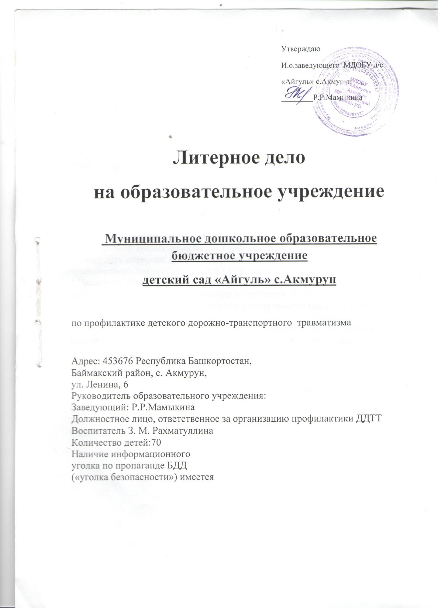 Муниципальное дошкольное образовательное бюджетное учреждение детский сад «Айгуль» с. Акмурун муниципального района Баймакский район Республики Башкортостан
